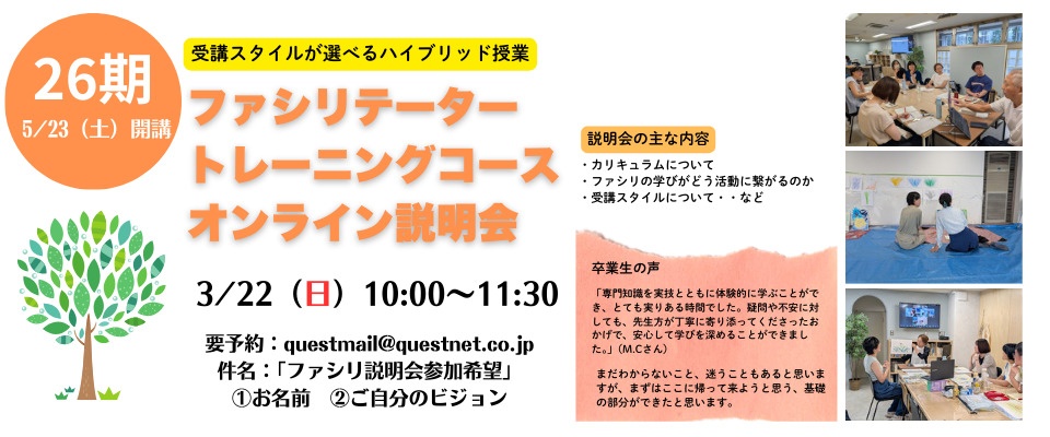 東京通学・オンライン5月23日(土)24日(日)10:00~17:00 *クエスト代官山スタジオ&オンライン