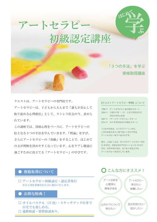 全3回を修了した方には「クエストアートセラピー初級認定」を発行いたします。