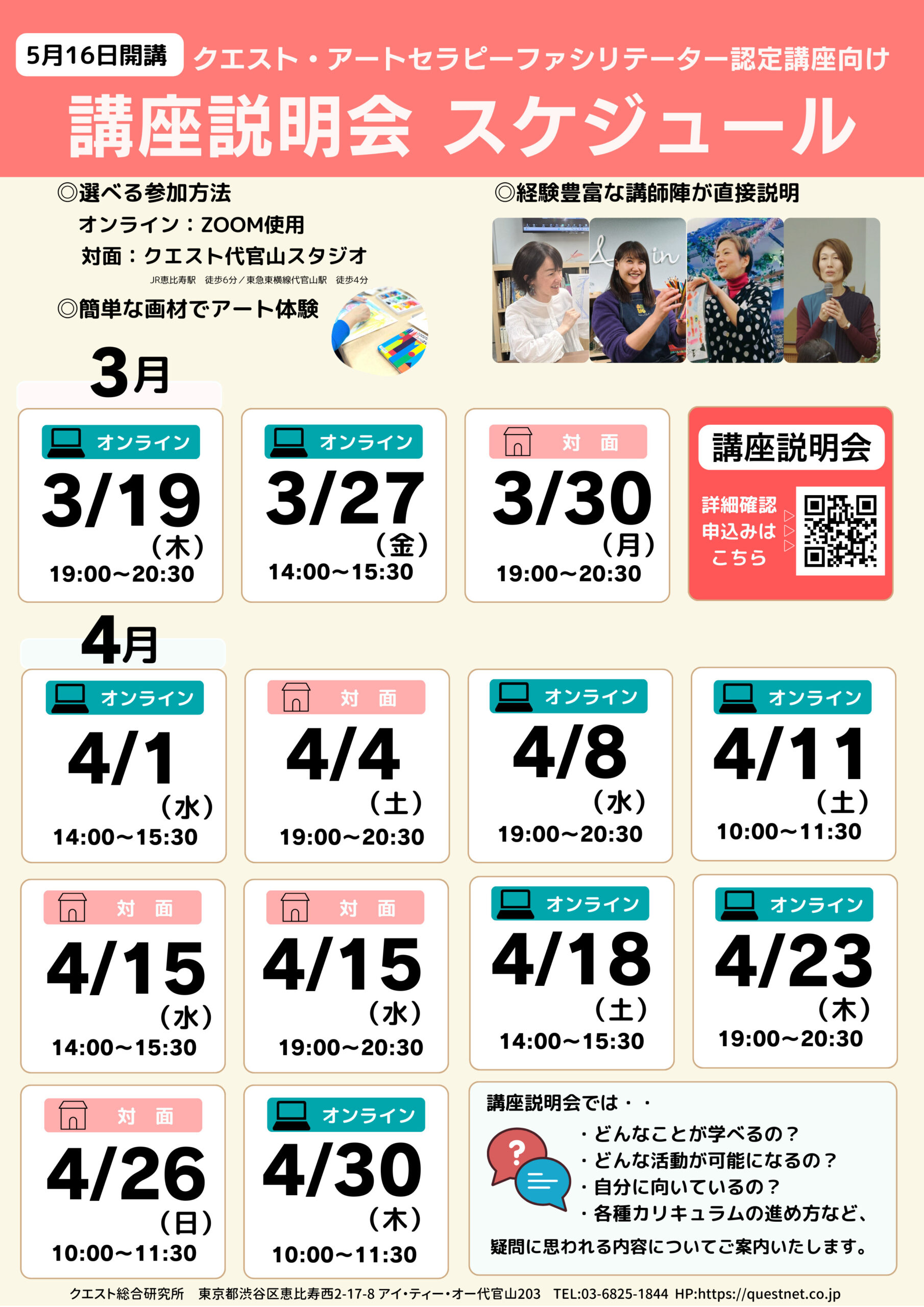 講座開講に伴い、アート体験いただける無料説明会を「オンライン」「対面」で開催いたします。